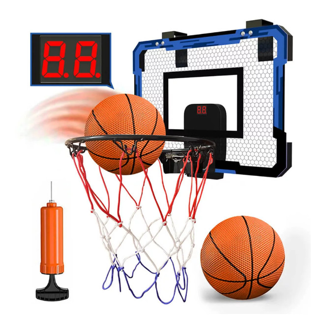 A Beltéri kosárlabda szett mindent tartalmaz, amire szükséged lehet: két labdát, egy pumpát és egy pontszámlálót is. Így már az első percben indulhat a verseny! Kövessétek, ki dobja a legtöbbet, és élvezzétek együtt az aktív kikapcsolódást.