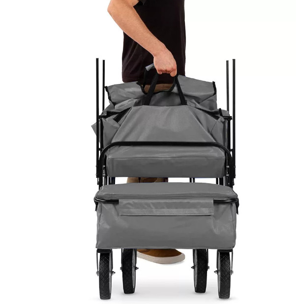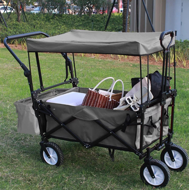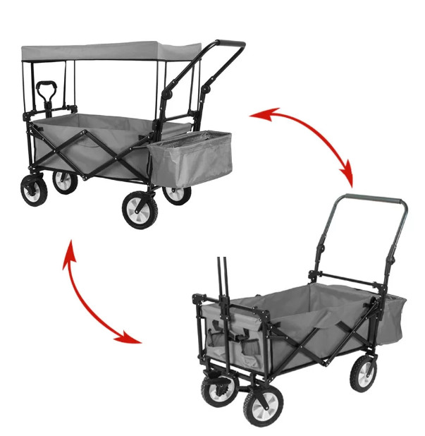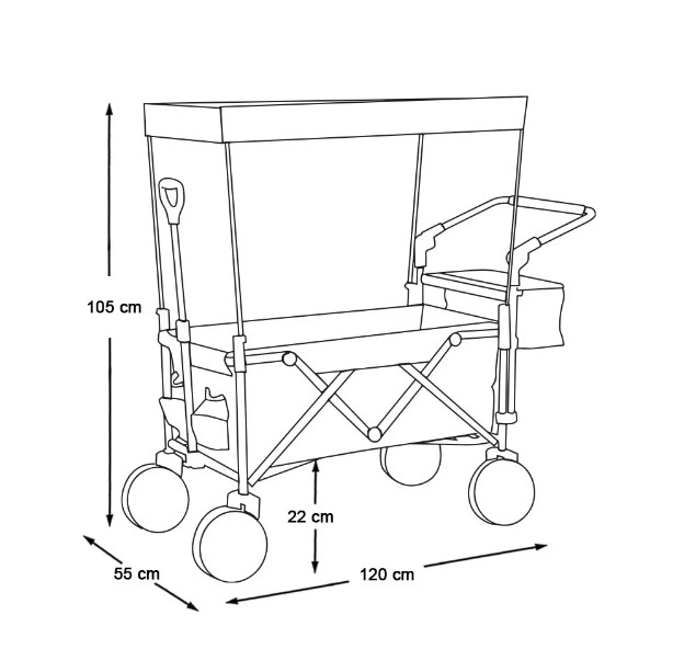 Az összecsukható kocsi tetővel praktikus és sokoldalú megoldás mindazok számára, akik kényelmesen szeretnék szállítani felszerelésüket kertben, kirándulásokon vagy akár strandoláskor. A stabil szerkezet, a nagy teherbírás és az ergonomikus kialakítás biztosítja, hogy a nehezebb csomagok mozgatása is egyszerű és kényelmes legyen.
